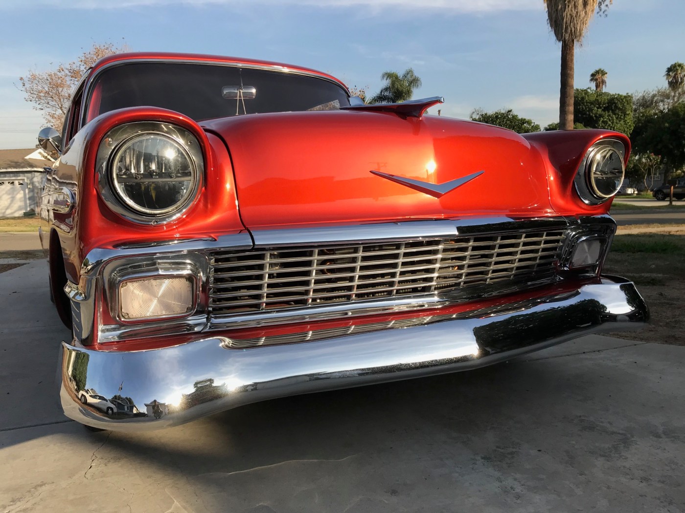 The car started its life in the Los Angeles, CA Chevrolet plant in 1956 as a Belair 2 door sedan. The Belair is the trim level, meaning that it comes equipped with all of the chrome and stainless-steel trim and the sedan means that the doors have full window frames (also referred to as a “post” car, due to the post between the front and quarter windows). Dad and I had done some basic updates to the car over the years including power steering, tilt steering column and relocating the battery to the trunk. Although the engine ran decent, the car had some electrical issues and wouldn’t always start. Well, that was not a problem, I was a 12 volt guy and even had the hookup at American Autowire through my job at Kicker so I ordered a new wiring harness and the project began.